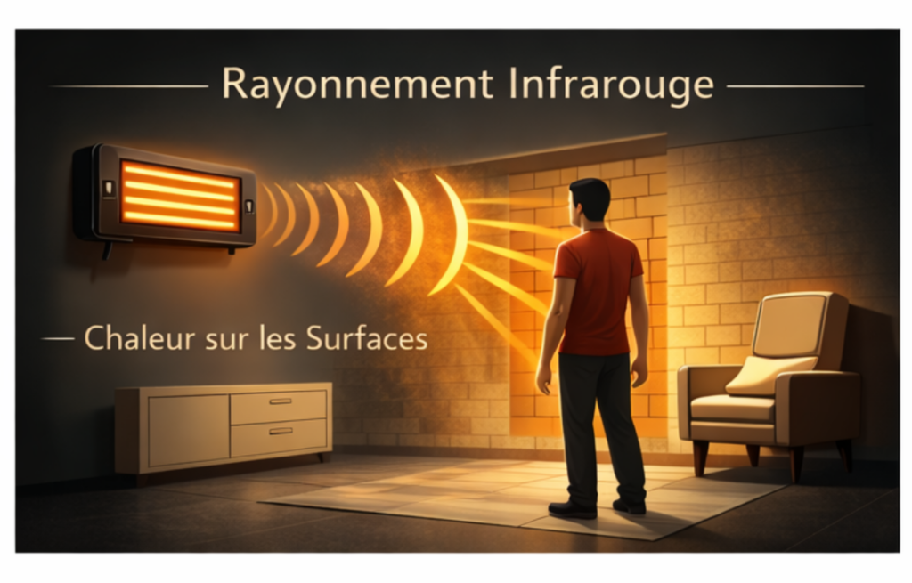 Ce fonctionnement amène également à s’interroger sur le chauffage infrarouge danger, notamment en termes de sécurité et d’installation. Les équipements conformes aux normes en vigueur sont conçus pour un usage domestique sécurisé, sous réserve de respecter les préconisations du fabricant.